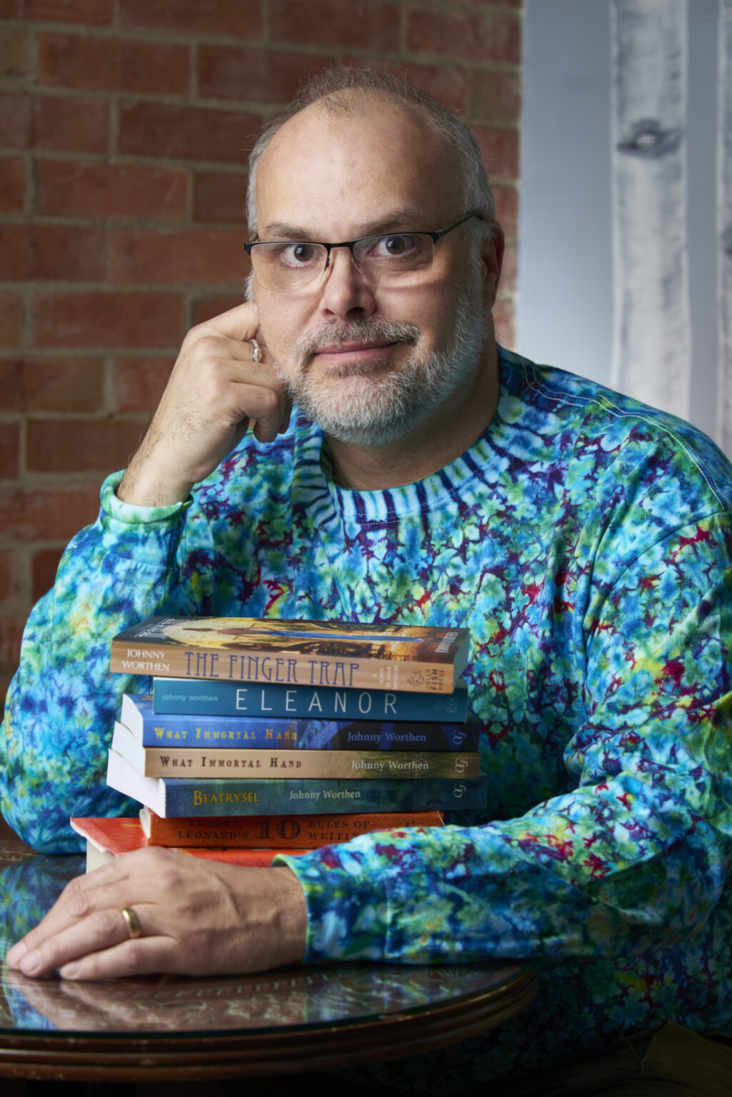 Johnny Worthen is an award-winning, best-selling author of books and stories—twelve years into his ten year plan to be an overnight success. Trained in stand-up comedy, modern literary criticism and cultural studies, he writes excellent multi-genre fiction, symbolized by his love of tie-dye and good words. “I wear tie-dye for my friends, but I write what I like to read,” he says. “This guarantees me at least one fan and easy dressing decisions in the morning.”