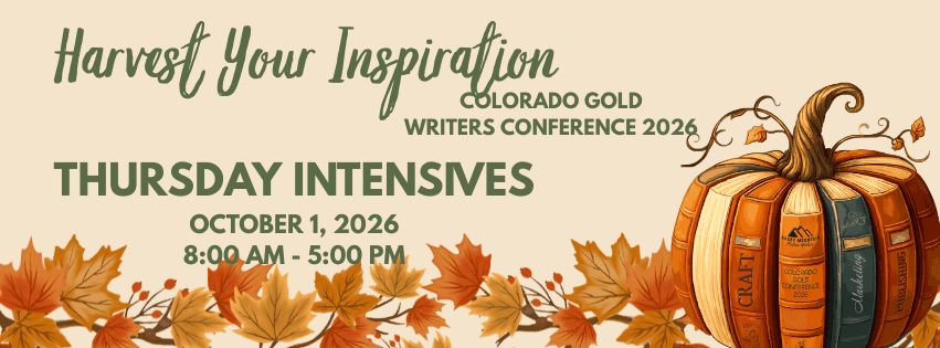 In answer to a demand for more in-depth programming, the Colorado Gold Writers Conference offers Thursday Intensives: all-day themed programming on Thursday, October 1, 2026 from 8am to 5pm, before the official conference begins Friday. (Note: Lunch is not included.)